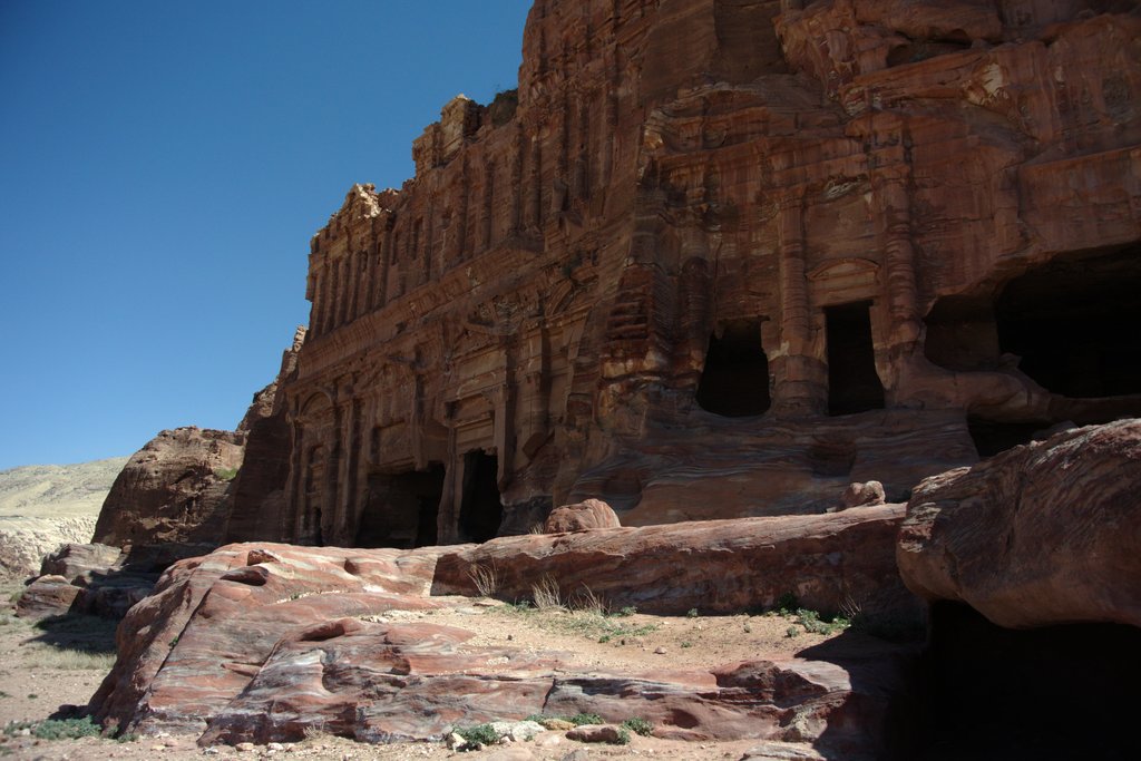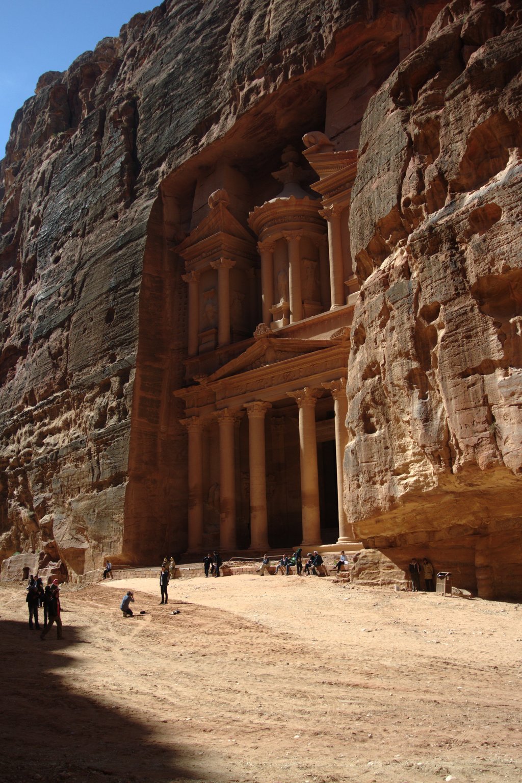 I slept like a baby and woke up to a shining sun and lucky for me, a light breeze. The weather forecast promised 20 degrees but it climbed up to 25 and to walk around among stone ruins and climbing on rocks, it was warm at least what you could say. Since the bedouin camp was just outside of Petra, which is an enormous area we were at Petra early in the morning, both before all the other tourists arrived and before the temperature went to high. Even that the whole group succeed to get an sun burn and the fat American lady gave up on reaching the parts there you had to climb. However don’t be afraid, everybody with a normal condition can make it and there is a lot of people who try to sell you souvenirs, rent you a horse/donkey/camel or horse with a wagon just to make sure that you can enjoy Petra (and they make some euros of course).